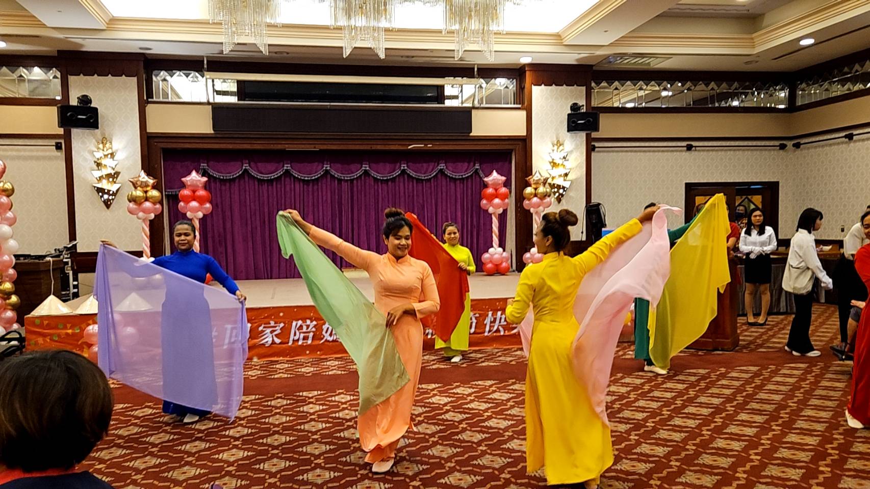 今天的表揚活動首先由縣內印尼新住民媽媽們成立的新夢舞團5位成員,帶來精彩的家鄉舞蹈,接著由盧秘書長致贈每位模範母親表揚狀並合影拍照留念;現場也播放每位模範母親的家庭照片剪輯與子女對媽媽的感謝影片,讓事先不知情的媽媽們感動驚喜不已。最後,由盧秘書長與貴賓抽出加值禮物,讓每位媽媽都開心的滿載而歸。