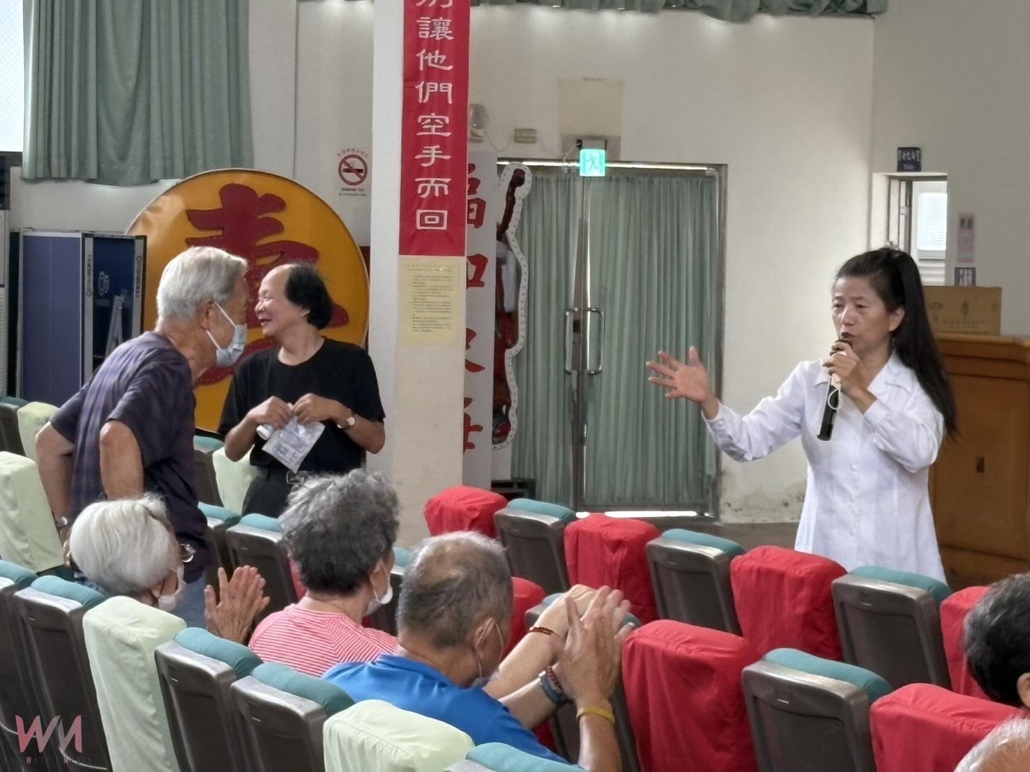 鐘瑩清以豐富的臨床經驗和淺顯易懂的方式,深入淺出地說明高血脂的成因、風險、預防方法及藥物治療原則,特別強調規律服藥與回診追蹤的重要性。講座中更穿插有獎徵答,讓現場長輩們在活潑互動中加深記憶,搶答時不乏舉手踴躍的熱烈場面,伯伯阿姨們笑聲連連,學習效果十足。