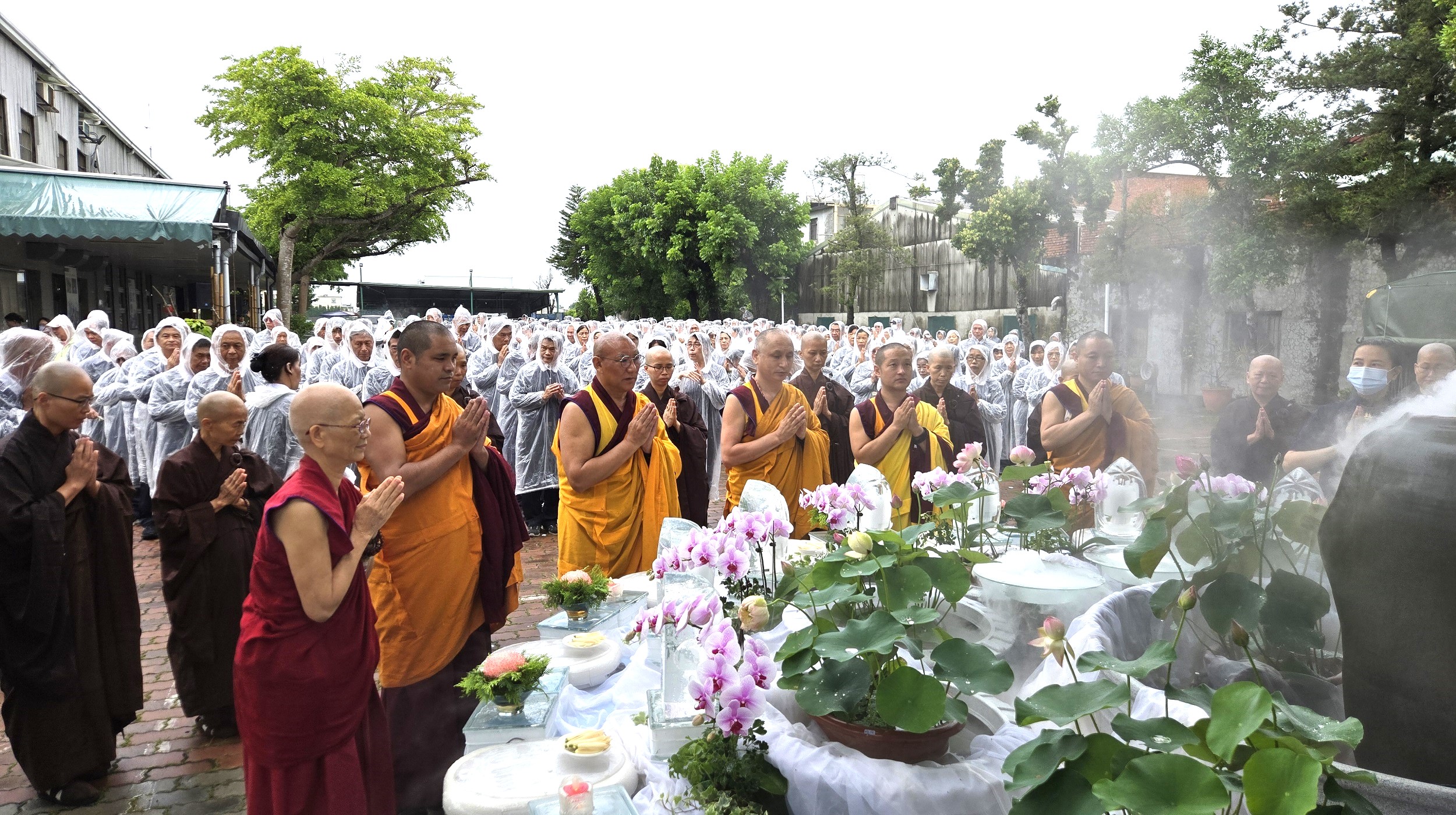 本次戶外浴佛設置菩提大道區及法水湧泉區,以2500年前佛陀說法台為場景。活動中適逢天降甘霖雨露均霑,清淨法水潤澤蒼生,法譬如水能洗眾生諸煩惱垢。浴佛典禮全程以靜心祈福為主,富有靈山法會的道氣,浴佛儀式莊嚴隆重。典禮結束後也特別為與會大眾準備壽桃結緣,將祈願祝福帶回家。