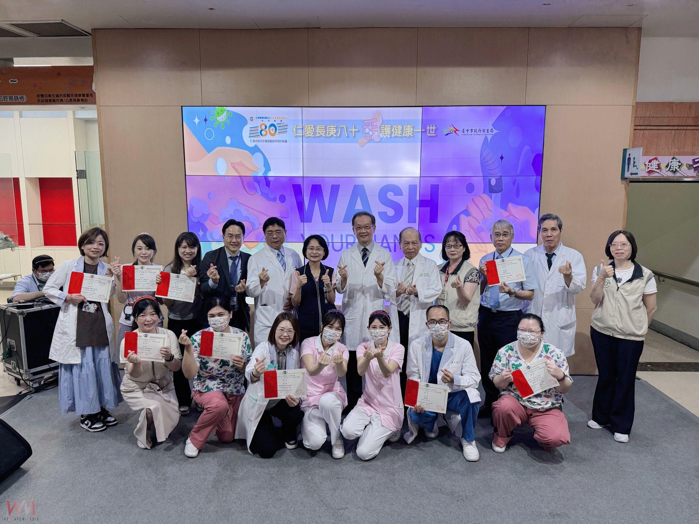 (觀傳媒中彰投新聞)【記者廖妙茜/台中報導】為響應5月5日世界手部衛生日,台中市政府衛生局今(13)日與仁愛長庚合作聯盟醫院(大里仁愛醫院)攜手舉辦「2025年世界手部衛生日」宣導活動。由衛生局副局長陳麗娟、衛生福利部疾病管制署中區管制中心副主任柯靜芬及仁愛長庚合作聯盟醫院(大里仁愛醫院)院長龔嘉德、副董事長詹廖明義共同擔任洗手大使,透過一系列有趣活動,宣導正確洗手的步驟及時機,提醒醫護及民眾手部衛生的重要性。