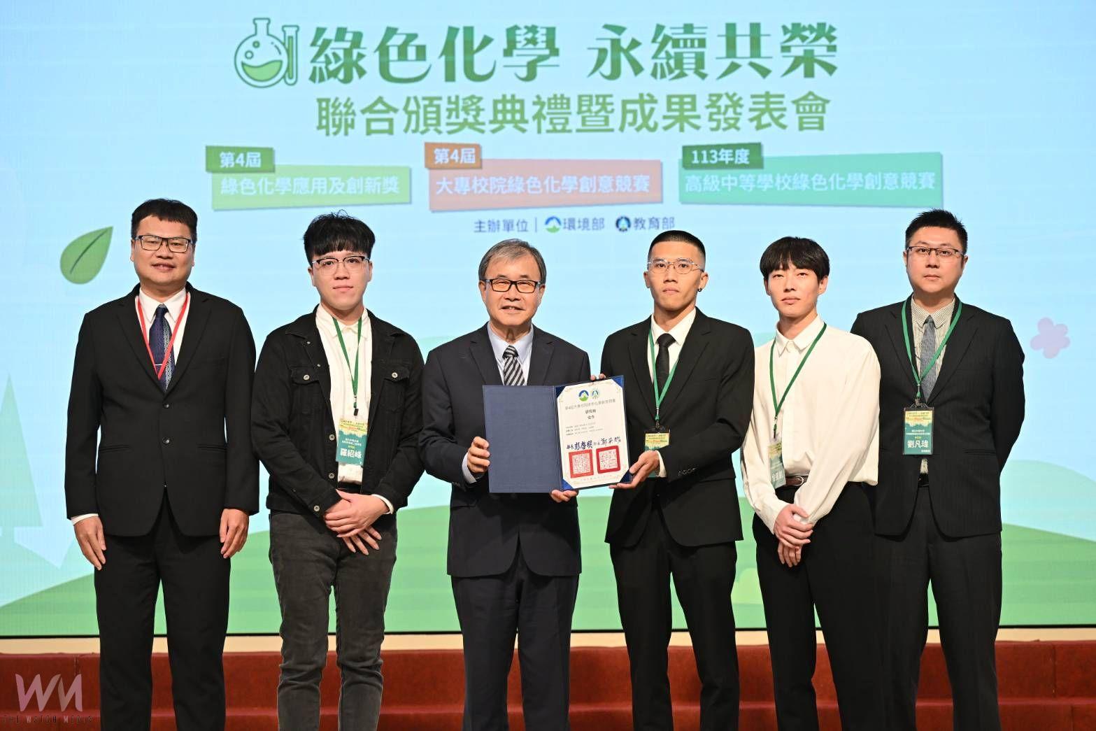 (觀傳媒中彰投新聞)【記者廖妙茜/台中報導】由環境部與教育部共同主辦的「第4屆綠色化學應用及創新獎」與「大專校院綠色化學創意競賽」,於9日舉行聯合頒獎典禮暨成果發表會。本次賽事中,國立中興大學循環經濟研究學院團隊表現亮眼,榮獲個人組與研究組共四項獎項,展現該院在綠色科技與永續材料領域的深厚研發實力。