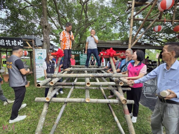 洪明昌說,竹橋與茅屋涼亭以古早簡單的「虹橋」工法搭建,並網路號召全省各地有志之士共工共學完成,今日開工就有來自屏東、台東的志工等6人協助,預計端午節前舉辦啟用點燈儀式,並公布竹橋名稱。