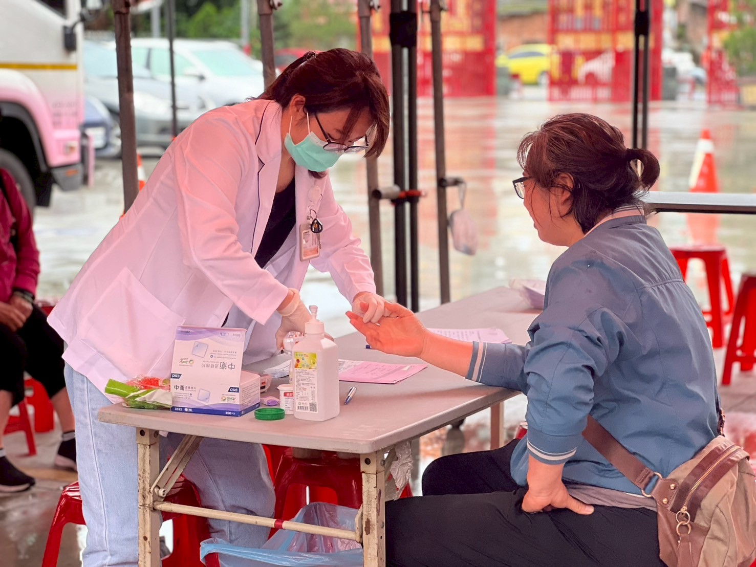 臺中榮民總醫院埔里分院於埔里媽祖廟舉辦「寵愛媽咪 逗陣來防癌!」癌症篩檢活動,提供乳癌、子宮頸癌、大腸癌及口腔癌等多項免費篩檢服務,鼓勵民眾及早進行健康檢查,把握預防勝於治療的契機。雖活動當日天候不穩、陰雨綿綿,仍有一批關心健康的民眾如約前來,展現出對自身與家人健康的高度重視與責任感,有年長者冒雨由家屬陪同前來篩檢,也有民眾特地調整行程參加,現場氣氛溫馨而踏實;除癌症篩檢外,本院亦提供參加篩檢者血糖與骨質密度檢測,為鼓勵家人共同守護健康,陪同參加的親友亦可獲得精美贈品,感謝民眾主動參與、身體力行健康生活。