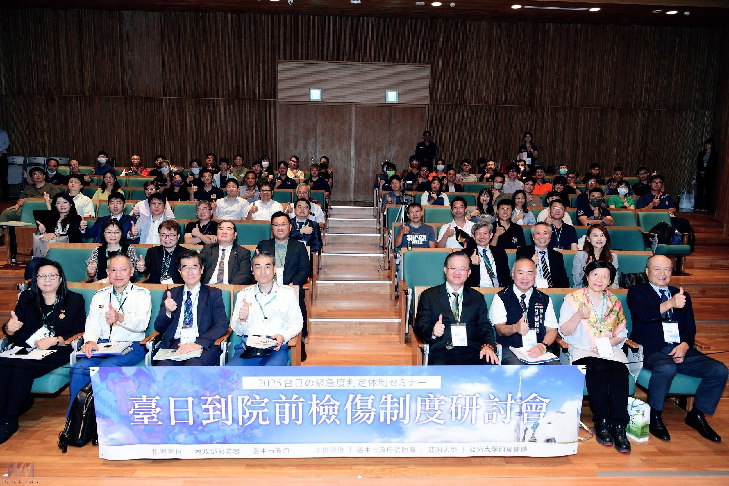 (觀傳媒中彰投新聞)【記者廖妙茜/台中報導】為強化我國到院前緊急救護檢傷制度並與國際接軌,內政部消防署與台中市政府消防局攜手亞洲大學、亞洲大學附屬醫院,今(21)日於亞洲大學現代美術館安藤講堂共同舉辦「2025年台日到院前檢傷制度研討會」,消防署長蕭煥章、市府消防局長孫福佑、亞洲大學附屬醫院院長許永信及亞洲大學副校長柯慧貞均出席開幕式,期盼深化台日兩地在急救品質管理領域的合作關係。