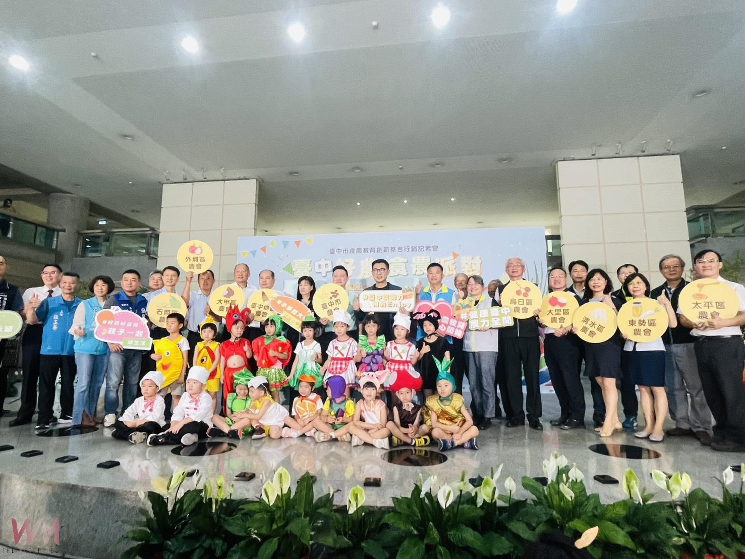 (觀傳媒中彰投新聞)【記者廖妙茜/台中報導】為推廣台中市食農教育,提升市民對農業與飲食鏈結的認識,台中市農會今(22)日在陽明市政大樓舉辦「台中好農 食農派對-台中市食農教育創新整合行銷記者會」。立法院副院長江啟臣、中市府農業局主秘黃春滿、台中市農會總幹事林育葦、農業部農改場副場長蕭政弘、農糧署中部辦公室主任陳瑛等出席參與,共同見證台中農業的新亮點,推動食農教育深耕社會、從小扎根。