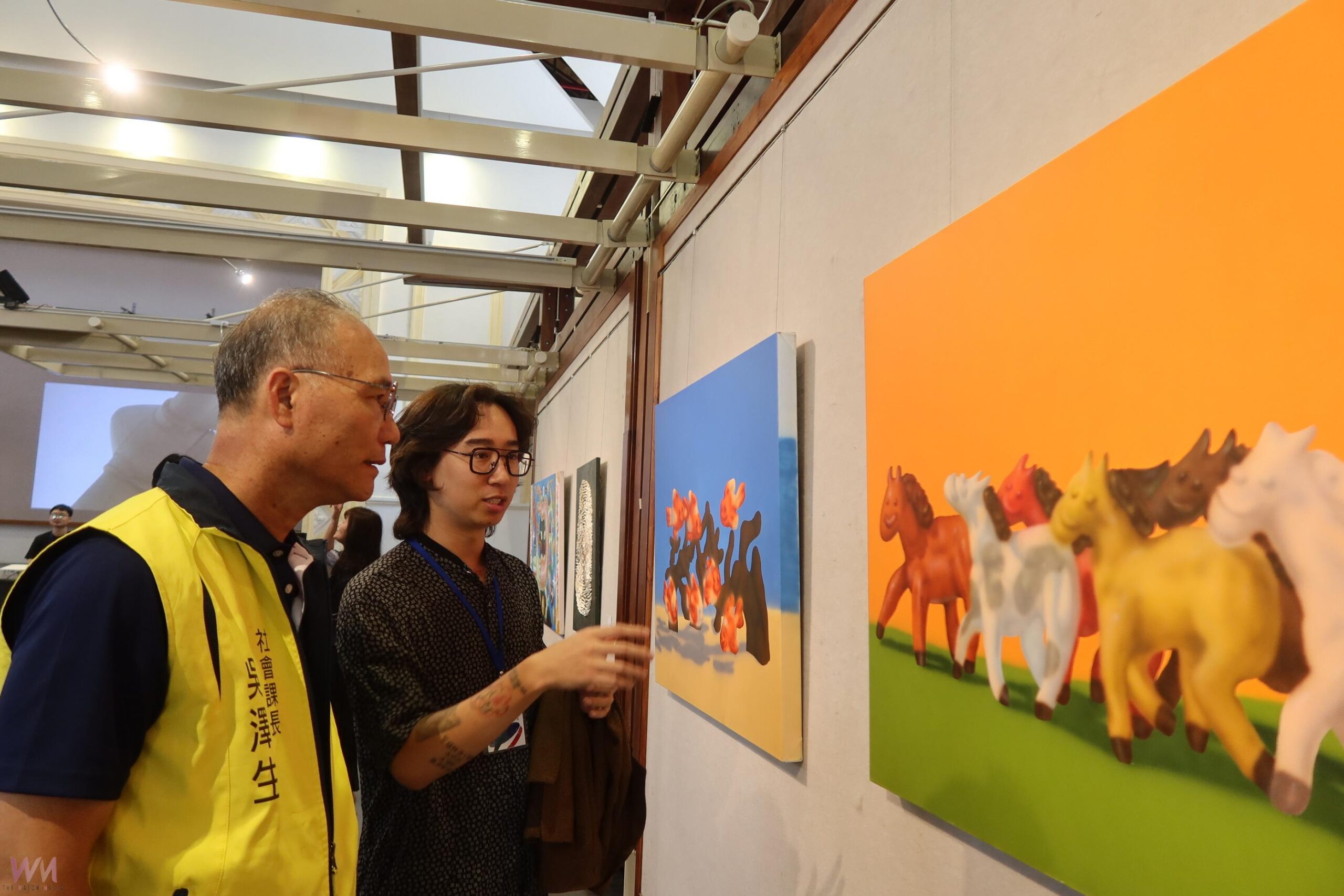 會中除介紹展覽內容外,並邀請駐校藝術家與策展團隊分享交流過程中的創作歷程與文化觀察,氣氛熱絡感人。彰化市長林世賢表示,此次展覽不僅展現藝術教育的活力與創意,更體現彰化在推動國際文化交流上的努力與成果。