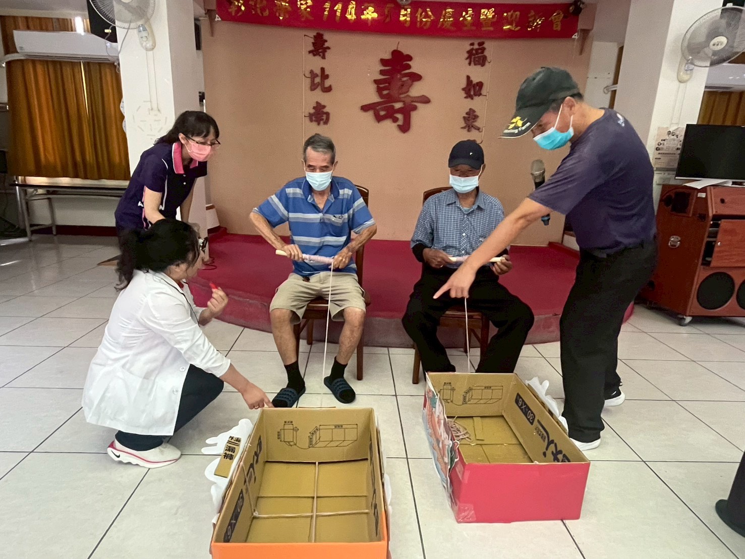 臺中榮總埔里分院社工室劉玉惠社工巧思設計「室內版龍舟體驗活動」,現場佈置充滿節慶氛圍,紙箱製成的龍舟道具色彩繽紛,令人眼睛為之一亮。長輩們分組比拚,手持道具在原地模擬划龍舟,隨著哨聲響起、掌聲與歡笑四起,整個會場彷彿也隨著他們的熱情沸騰起來。彰化榮家家主任蘇再勝也親自到場與長輩們一同參與,在活動中,一位參賽的榮民爺爺熱淚盈眶地說:「我這輩子從沒划過龍舟,沒想到八十歲了還能有這樣的體驗,真是做夢也想不到!」來自長輩真摯的話語,深深打動在場工作人員。端午,不只是節日,而是回憶的觸點,是情感的連結,是對過去的珍惜與對當下的守護。