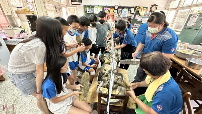 活動中特別運用學校食農教育農場栽種的紅蔥頭等天然食材,並由學校護理師向學生解說粽子的熱量與營養成分,強化健康飲食觀念。低年級學生在志工媽媽示範下,了解粽子的由來與製作流程;高年級學生則親自體驗從選葉、填料、折疊到綁繩的完整包粽過程,直呼包粽子「既困難又有趣」。