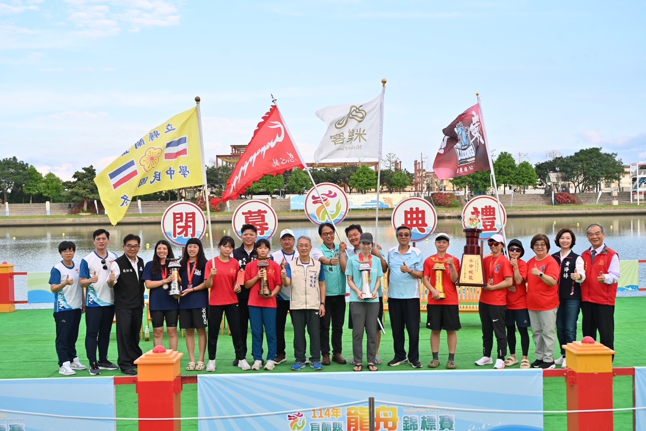 林茂盛代理縣長親臨現場主持閉幕典禮,首先頒獎表揚「114年度宜蘭縣國民中小學學生端午寫生比賽」各組得獎學生,接著頒發獎盃給優勝隊伍,除了恭喜獲獎隊伍並嘉勉今年參賽的65支隊伍,勝不驕、敗不餒充分展現運動家的精神完成比賽。