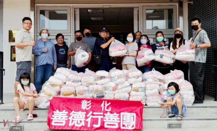 彰化「善德行善團」近日與雲林縣警察局北港分局合作,捐贈100份生活物資給雲林口湖鄉的弱勢家庭。(圖/記者蘇榮泉翻攝)