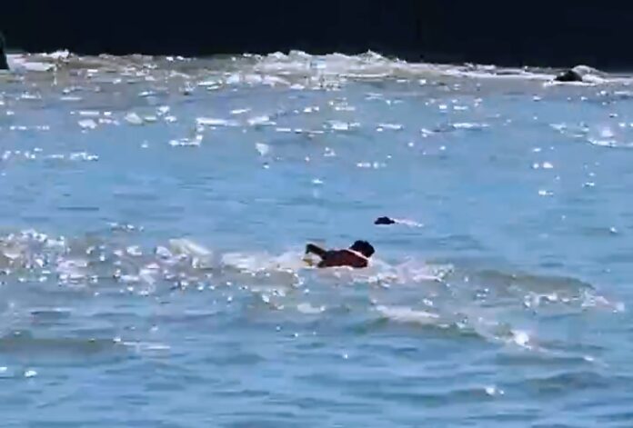 15日下午,屏東枋寮漁港燈塔下方海域驚傳溺水事件,正值海軍陸戰隊兩棲偵搜大隊特勤中隊在當地進行海上反恐岸際操演,任務結束後兩名特勤隊員剛巧駐艇於碼頭旁,聽聞現場民眾呼救聲後,毫不猶豫地立刻跳海搶救。(圖/民眾提供.2025.06.15)