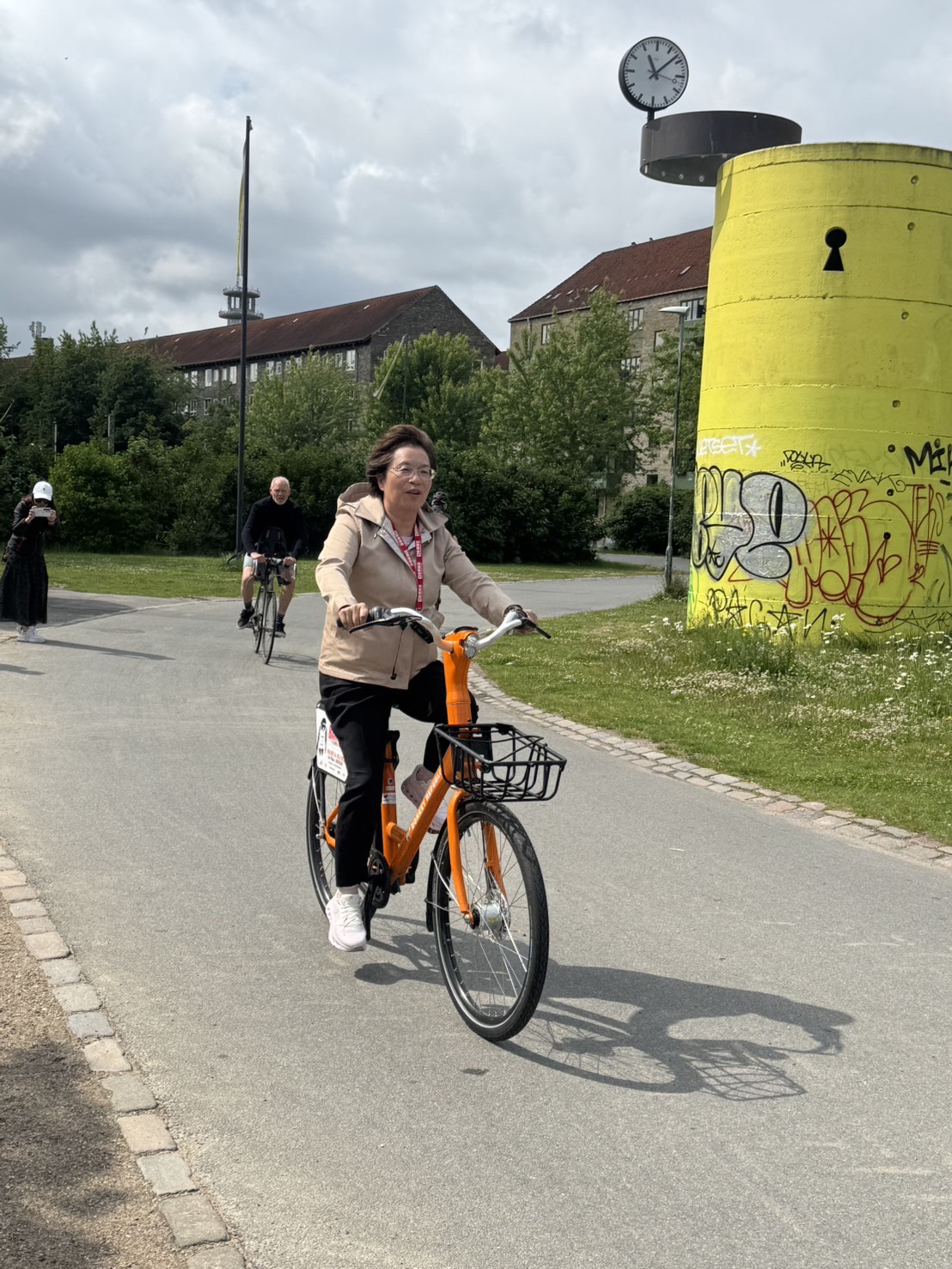 王惠美指出,哥本哈根被譽為全球最宜騎自行車的城市之一,全市建置超過400公里的自行車道,並推動「Green Wave」綠波智慧號誌系統,使自行車在尖峰時段可穩定以每小時20公里速度順暢前行,實現一路綠燈的騎行體驗。該市近六成居民擁有自行車,通勤與上學多以單車代步,自行車已深植於市民日常生活之中,展現出高度的綠色交通文化。