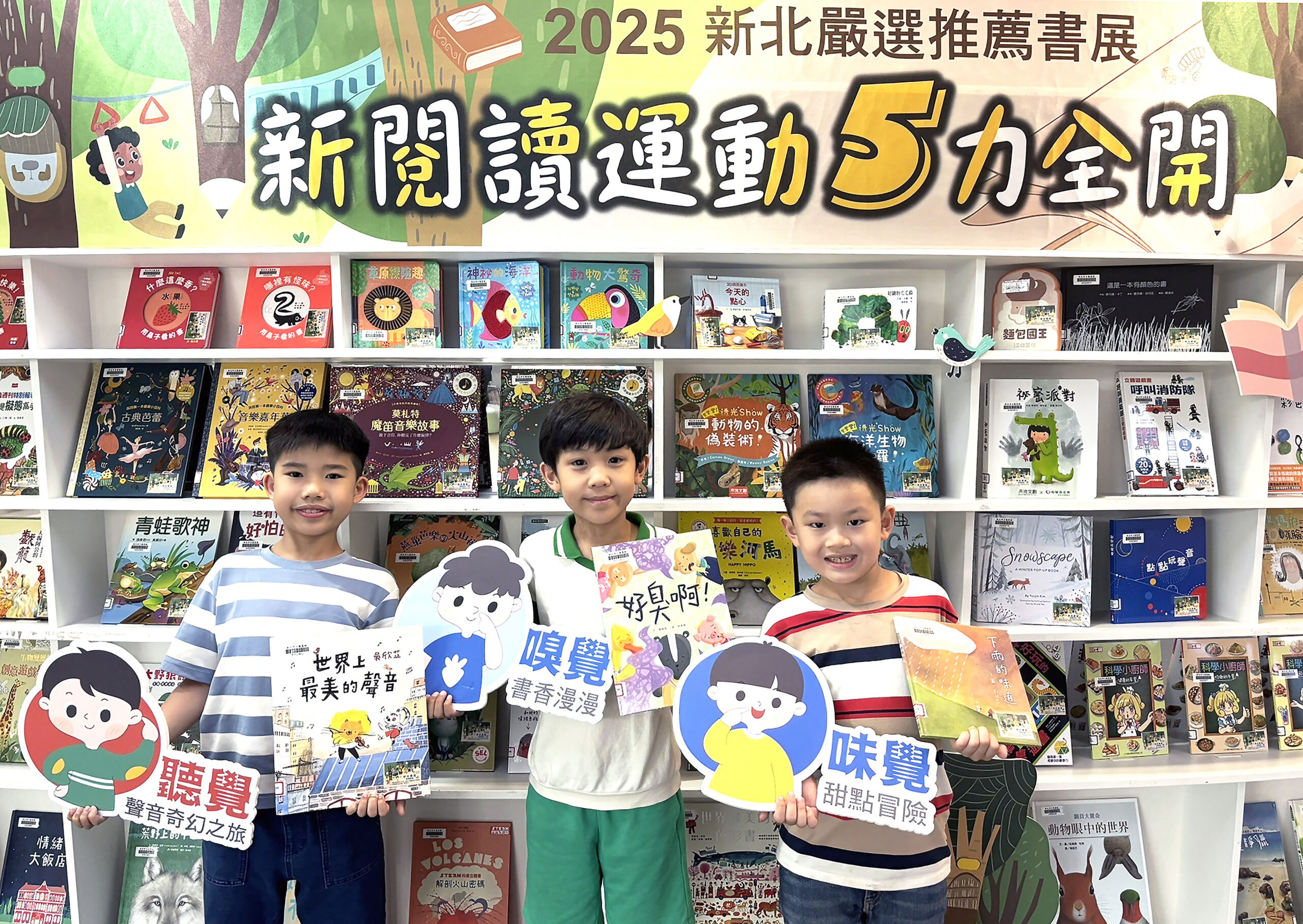 新北市立圖書館吳佳珊館長表示,暑假是課外閱讀的好時機,圖書館今年特別以「五感」為主軸,除了邀請全市35位閱讀推動教師推薦上百本好書,同時結合視覺、聽覺、觸覺、嗅覺、味覺等不同方式,帶學童用身體接觸、用感官學習,讓閱讀更有聲有色,希望透過活潑有趣的方式讓孩子親近閱讀,利用暑假培養閱讀習慣。