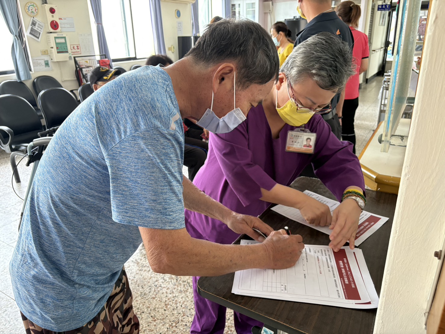 本次接種作業由榮家醫務室劉杰峯醫師領銜主導,針對每位長輩的健康狀況進行詳細評估與充分說明,確保接種過程安全無虞。現場由醫護人員協助長輩登記、接種,流程秩序井然。