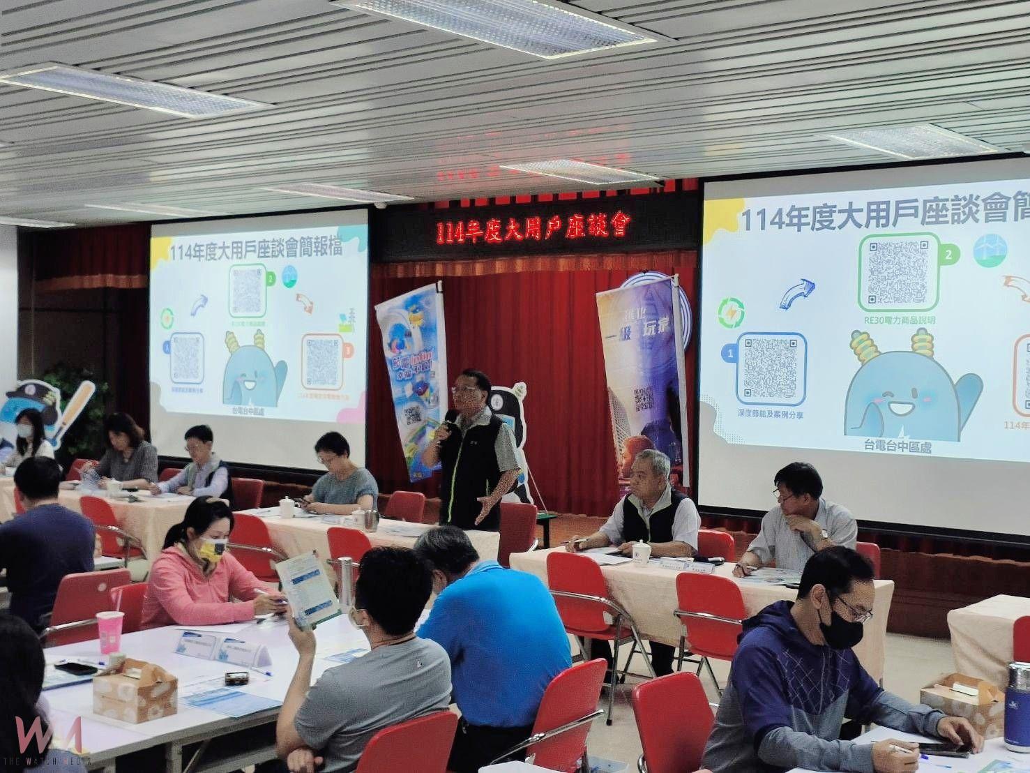 (觀傳媒中彰投新聞)【記者廖妙茜/台中報導】為響應政府深度節能計畫,台電台中區處今(19)日辦理大用戶座談會,邀請各行業,共計逾100位業者參與,其中亦包括了醫院、餐飲業……等用電量大的公共場所用電戶,台電總管理處亦特別派員至台中指導,希望能夠藉由實際案例推廣深度節能與台電節能診斷服務;此外,台電亦於會中介紹說明6月首度推出之RE30電力商品,希望進一步協助企業達成RE目標,取得國際供應鏈門票,以補充企業綠電需求為目標,協助企業降低碳排量及取得綠電憑證,最後,台中區處更為與會業者報告台電為提升大台中地區之供電品質所做的各項努力及維護工程,讓業者們對台中地區之用電可靠度更具信心。