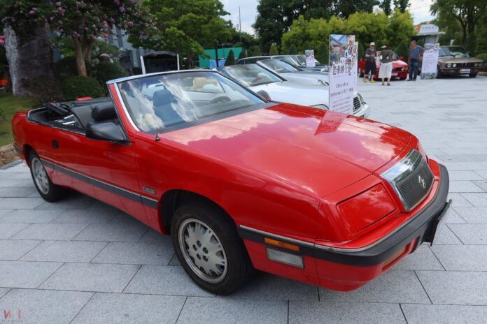 一輛艷紅色的Chrysler LeBaron JCP27雙門敞篷車吸引眾多目光。這部1988年出廠的美式敞篷車,曾是台語天后江蕙的愛車,車燈能像眼睛般「眨眼」,柔順電動軟篷在陽光下閃耀,充滿八0年代的都會浪漫。