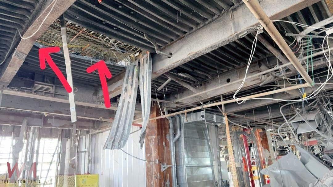 都發局說明,今日施工作業為第13樓樓板(鋼承板)及小梁置換,是因當初氣爆造成部分小梁變形、樓板破損,須依照先前獲審通過的修繕施工計畫,辦理13樓樓板(含鋼承板)更換,並進行12樓部分小梁補強與混凝土澆置作業。