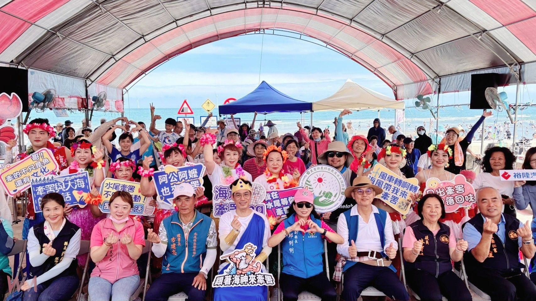 今22日於後龍水尾社區海邊沙岸區舉辦 「百人牽罟-新船入海祈福與食魚教育推廣」活動大成功。(圖/記者廖妙茜拍攝)