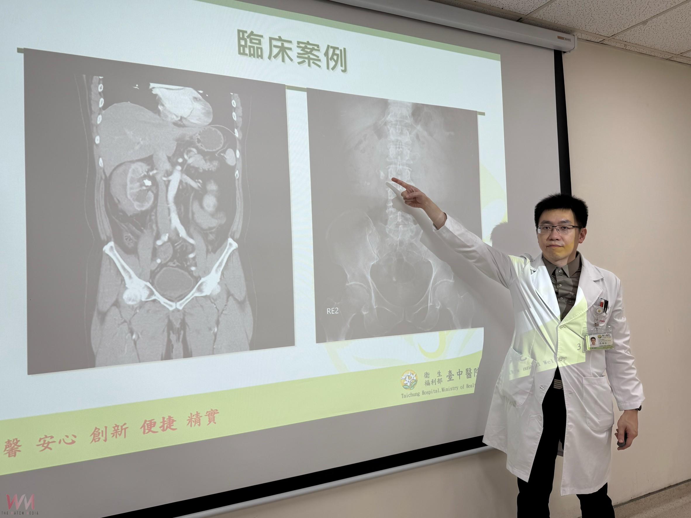 衛生福利部臺中醫院簡維弘醫師指出,患者因工作性質經常要久坐處理文書工作,卻因為不想喝水後頻繁上廁所,即使近月天氣炎熱,他依舊不想喝水跑廁所,今年三月初突然右側後腰痠痛到讓他冒冷汗,早有經驗的他立即請假就醫,到公司附近醫院接受碎石手術。