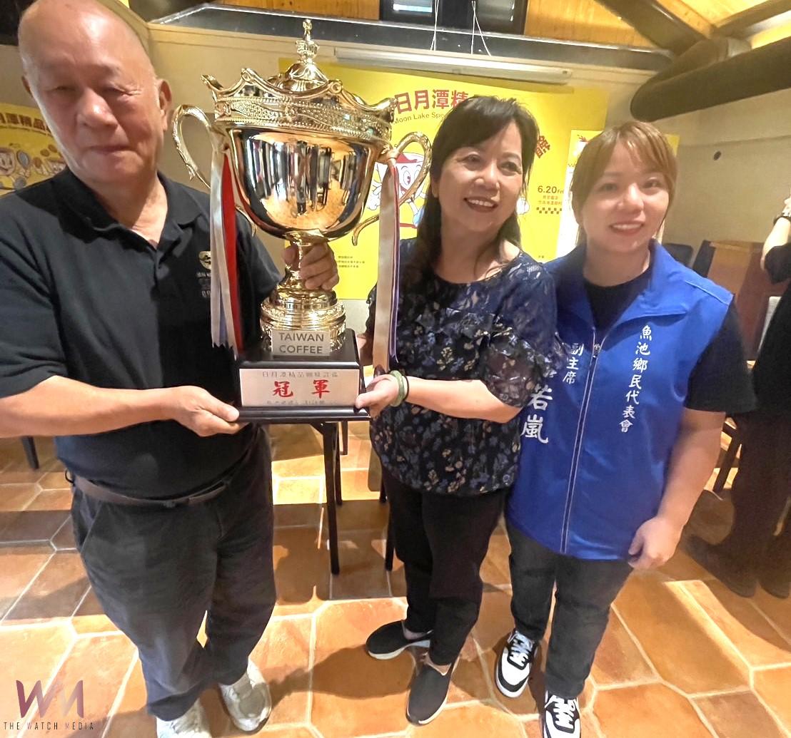 24日獲評鑑為特等、金質、冠軍的咖啡在中潭公路旁山豬衝吧咖啡店沖泡各等咖啡分享,現場咖啡飄香讓參加咖啡農與行政院中部辦公室副執行長陳錦倫、南投縣議員王秋淑、南投縣政府機要秘書黃馨瑩、日月潭形象商圈理事長陳奎合、魚池鄉代表會副主席王若嵐等來賓的盛讚。