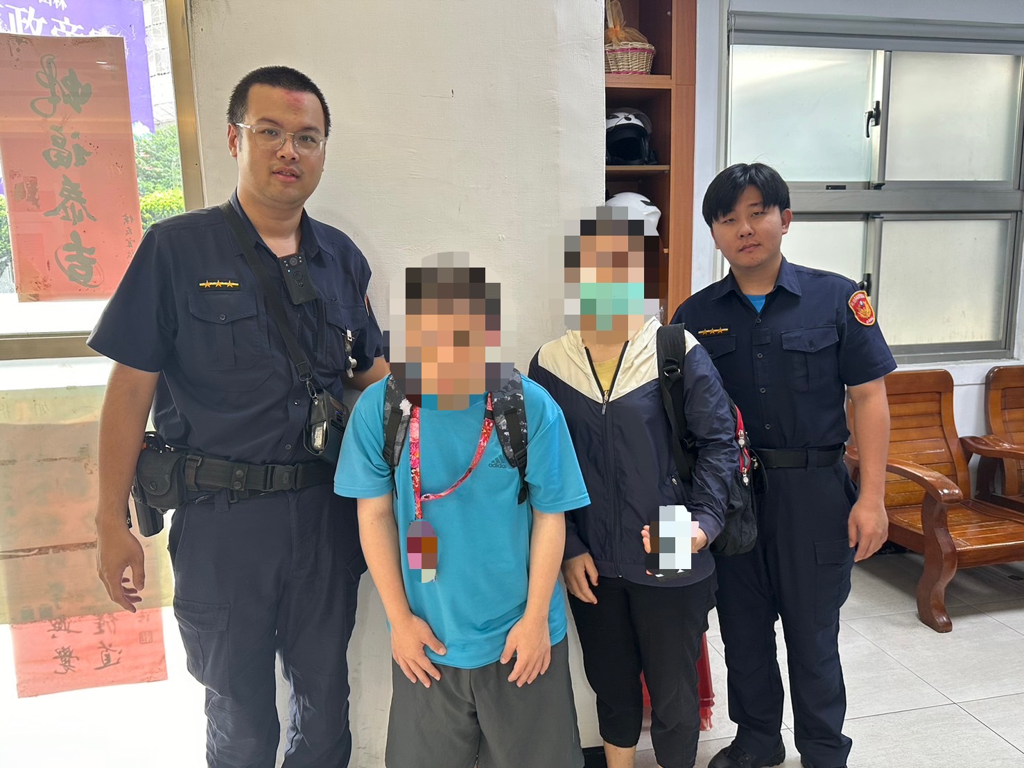 員警發現該名少年疑似罹患唐氏症,在離家後因對路況不熟而在路上徘徊。警方連忙安撫少年焦慮不安情緒,同時利用警政系統找尋少年資料,嘗試聯絡照服員。員警見他略顯疲態,於是先將其載返派出所稍作休息,後續照服員到場接回少年返家,讓整起迷途奇遇平安落幕。