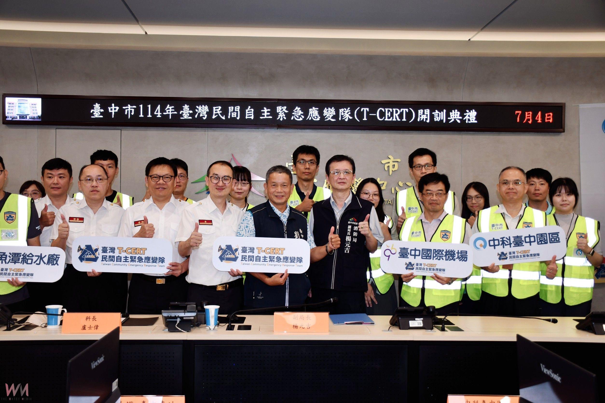 (觀傳媒中彰投新聞)【記者廖妙茜/台中報導】因應極端氣候、地震與都市複合型災害風險日增,台中市政府消防局積極建構全民防災網絡,今(4)日舉辦「台灣民間自主緊急應變隊(T-CERT)」開訓典禮。台中市今年T-CERT結合陸、海、空三大資源,共組五支應變隊伍,強化災害初期反應量能;消防局副局長楊元吉致詞表示,T-CERT不僅可支援政府災害應變,更是城市安全守護的第一道防線,盼透過教育與訓練強化民眾自救互救能力,打造更有韌性的台中。