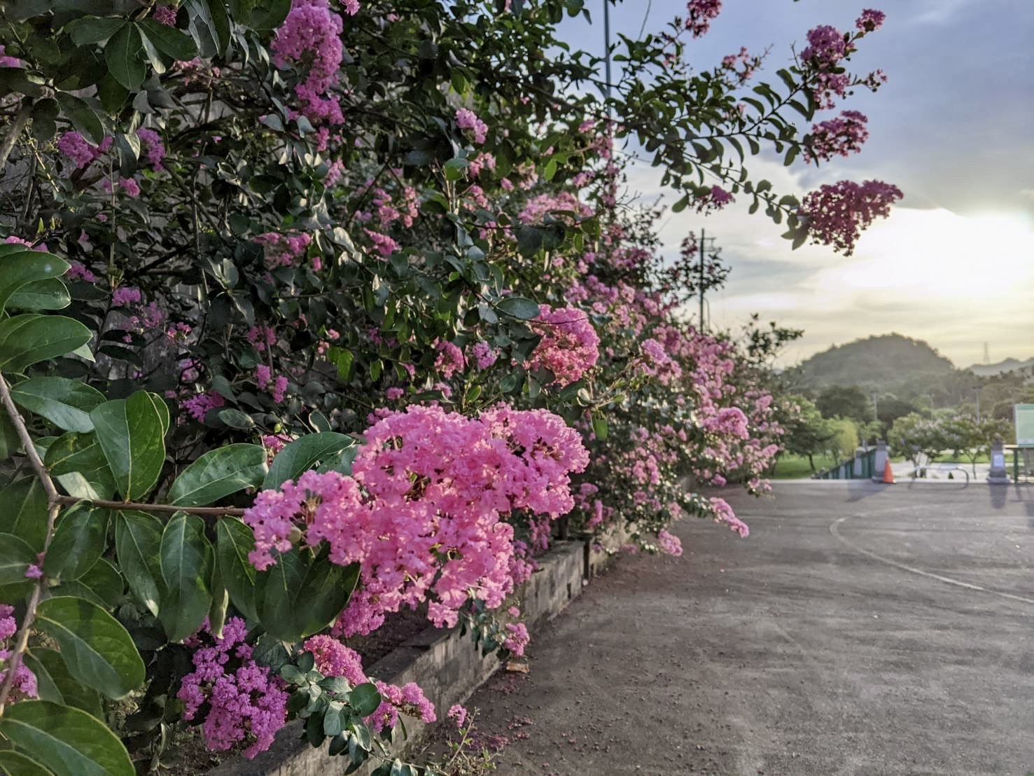 新北市景觀處表示,盛夏時節正是市內各公園花卉繽紛綻放的季節。位於貢寮區的「環保公園」,大片紫薇花(又名百日紅)正值花期,一串串粉紫色花穗隨風搖曳,如雲霞般浪漫。紫薇花語象徵「親密無間」,公園內寬廣的草地也很適合孩子奔跑玩耍。家長不妨帶著孩子在花間散步,感受大自然氣息,並在花牆旁留下溫柔親吻,成為情感交流的美好時刻。