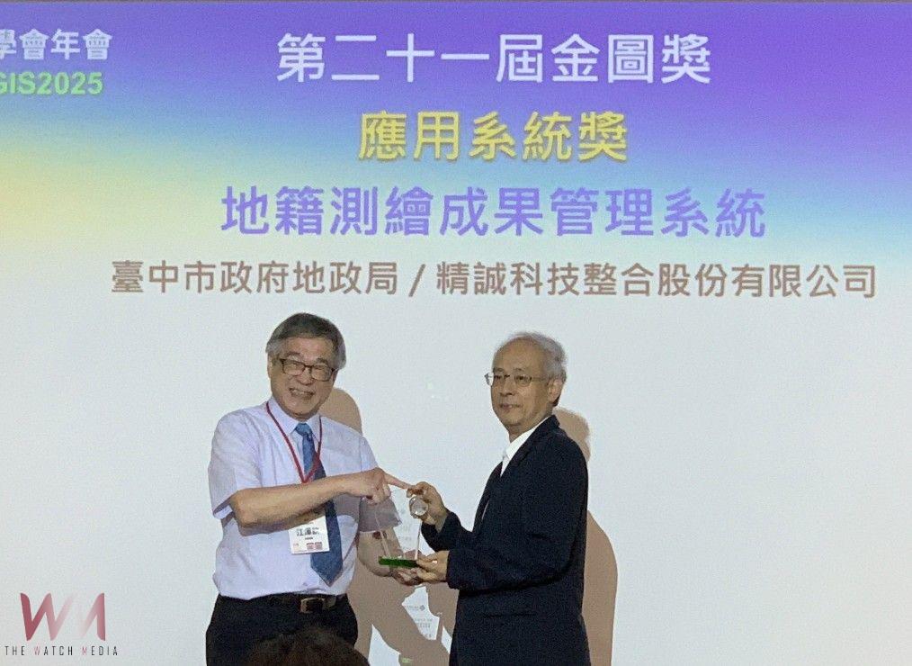 (觀傳媒中彰投新聞)【記者廖妙茜/台中報導】台灣地理資訊學會今(9)日於中央大學教學研究綜合大樓舉辦第21屆金圖獎頒獎典禮,台中市以「地籍測繪成果管理系統」參獎並榮獲最佳應用系統獎。