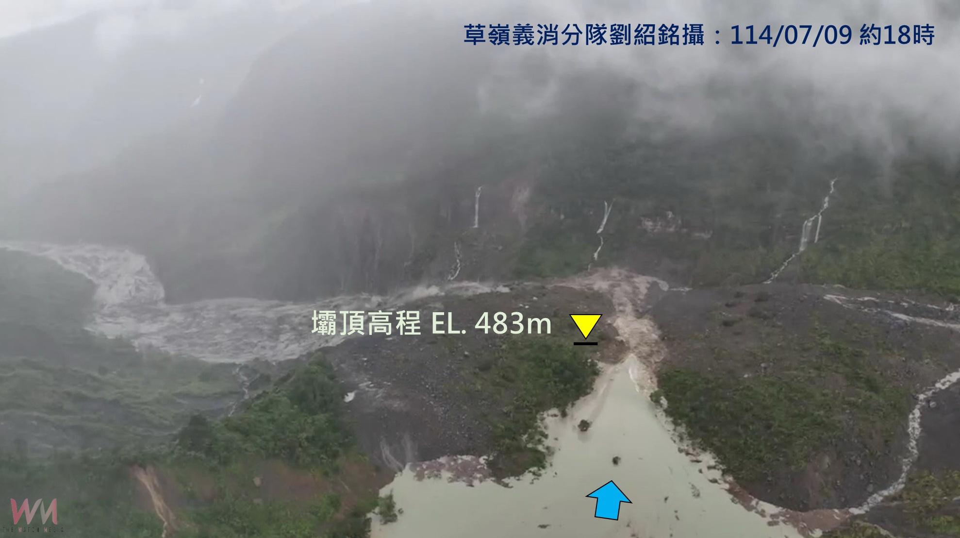 根據四河分署昨(9)日的現勘研判,清水溪草嶺段堰塞湖壩體高度60 公尺、壩長320 公尺、壩體體積約215萬立方、蓄水量約2245萬立方公尺、蓄水面積約62公頃;也做出保守估計30分鐘潰決情境,流量約250cms,小於清水溪自體計劃5年重新期流量,未達清水溪警戒水位;加上堰塞湖壩體位於人員機具無法到達深槽峽谷地形,基於整體安全考量,先暫不處理,待其自然恢復。