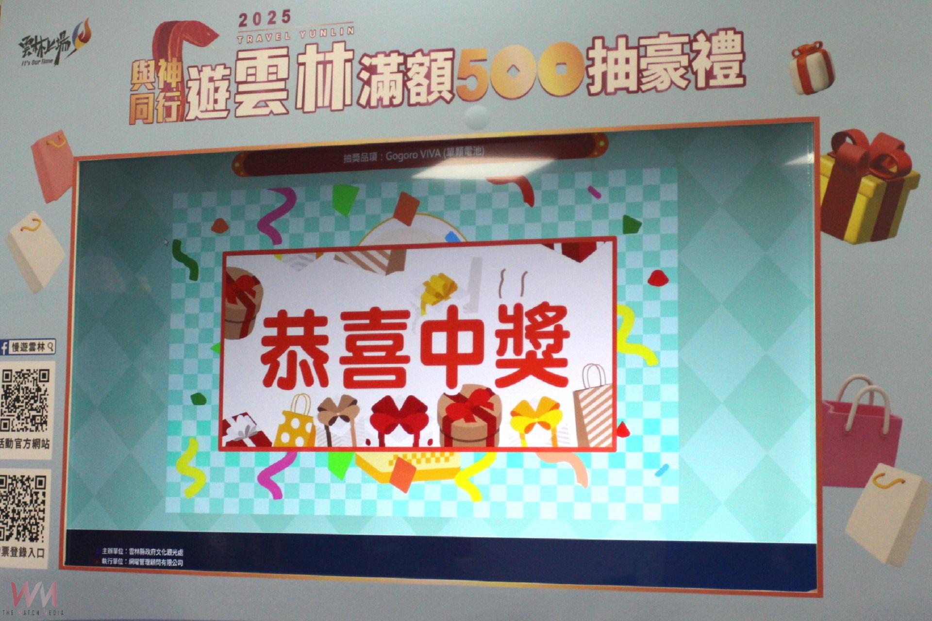 2025與神同行遊雲林滿額500抽豪禮活動,今(14)日上午在文光處4樓會議室的現場抽獎直播,由縣長張麗善主持,邀請律師吳文城蒞臨見證,抽出百萬名車由雲林北港的吳姓女士幸運獲得,並當場撥打電話核對和祝賀時,吳女乍聽之下一度沉寂無聲,醒緩後即雀躍不已欣喜高呼;隨後也由文化觀光處陳璧君處長抽出iPhone、日本雙人來回機票等豪禮。
