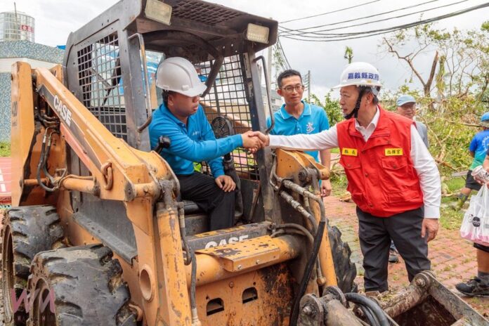 (觀傳媒嘉義新聞)【記者吳東林/嘉縣報導】嘉義縣風災過後校園災情慘重,操場積水、屋頂破損、大樹傾倒等遍及各校,縣長翁章梁第一時間即啟動復原機制,尋覓相關資源力拼恢復環境,屏東縣長周春米聞訊,當下指示縣府單位主動提供工班團隊,包括水利處、環保局等團隊及機具,14日上午抵達嘉縣分兵三路,分別挺進義竹、港漧和水上國小即刻開工。