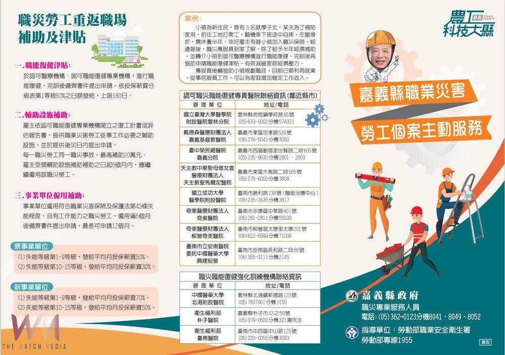 勞青處指出,小施隨後前往嘉義縣勞工暨青年發展處尋求協助,個管員立即介入,協助申請勞保傷病給付及進行職災認定。個管員同時建議,若雇主不願意出面,只要勞保局認定為職災案件,後續可透過勞資調解機制保障其合法權益。 勞青處長陳奕翰表示,職業災害勞工個案主動服務」不只提供補助,更重要的是陪伴。根據勞動部「職災保護法」,勞工不僅能申請住院照護津貼、復健補助、死亡慰問金,還可獲得法律協助與在地關懷訪視。嘉義縣政府持續推動職災個案管理服務,提供受災勞工從補償申請、心理支持到復工輔導的全方位協助,讓面對職災的勞工不再孤軍奮戰。