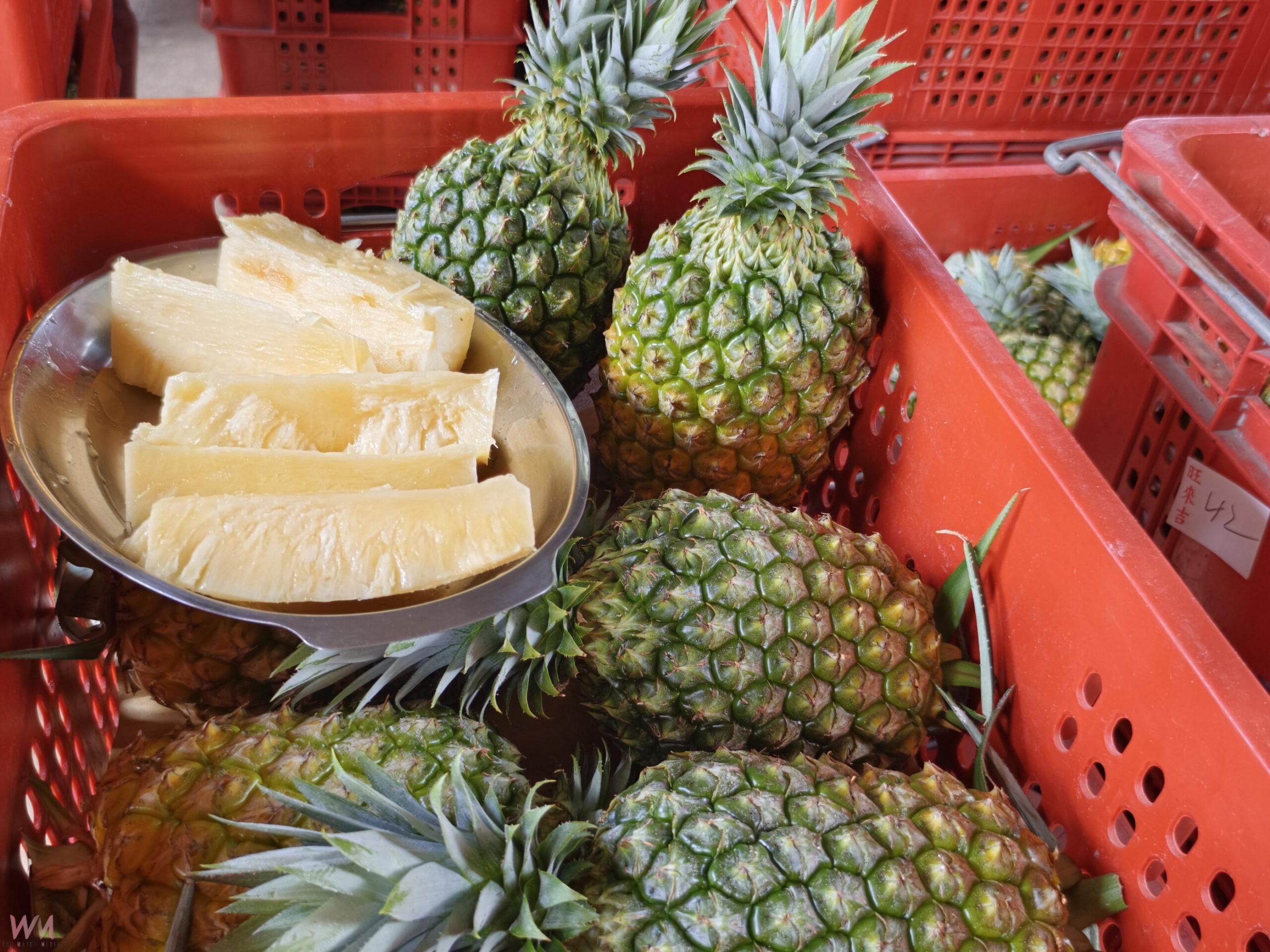 梁世爵表示,水蜜桃香鳳梨自種植至採收需16至18個月,採有機栽培,平均價格每台斤35至38元,較一般鳳梨高出2至3成。他估計年產量約4至5萬顆,主要銷往國內高端市場及日本。