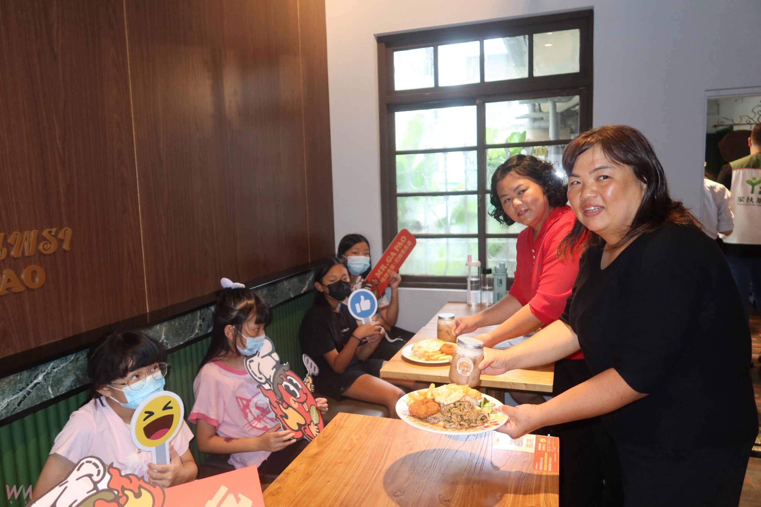 (觀傳媒彰化新聞)【記者陳雅芳/彰化報導】「從被幫助到幫助人!」40年前曾受到彰化家扶中心照顧的施姓姊妹,現在經營的「阿杜皇家泰式料理」有聲有色,特地舉辦二手尋寶義賣活動來回饋社會,今(18)日還請家扶的小朋友到員林分店吃打拋豬套餐,第一次吃到泰式料理的孩子們開心得不得了,直說「泰式冰淇淋超好吃!」