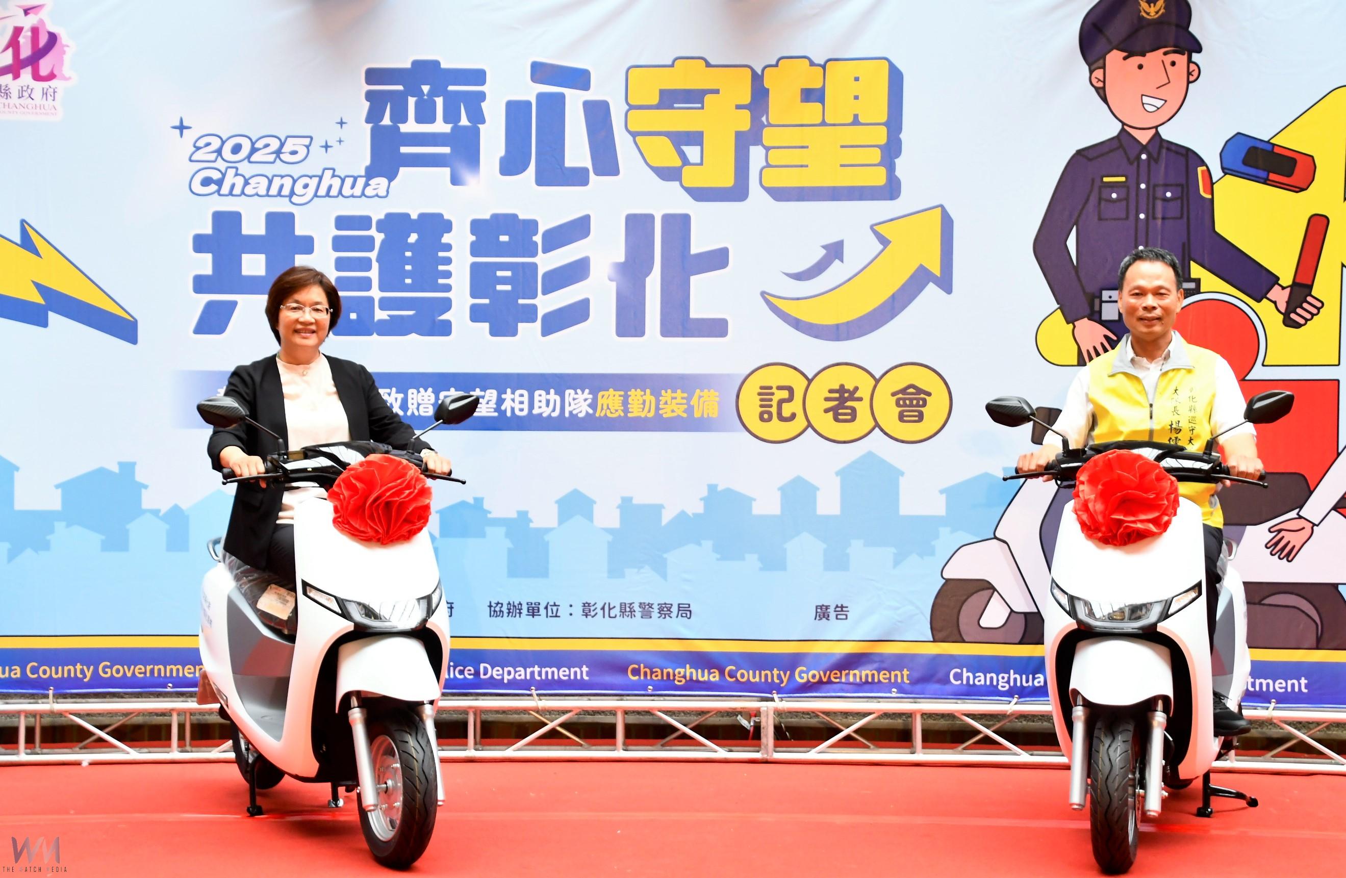 (觀傳媒彰化新聞)【記者陳雅芳/彰化報導】如虎添翼!彰化縣政府今(22)日上午於縣警局一樓中庭舉行「補助捐贈守望相助隊應勤裝備會」,大手筆編列842萬元經費,補助購置75輛電動機車及為全縣守望相助隊隊員添購防水、防滑、透氣的新勤務鞋,提升巡邏安全與效率,展現社區自我防衛力量。