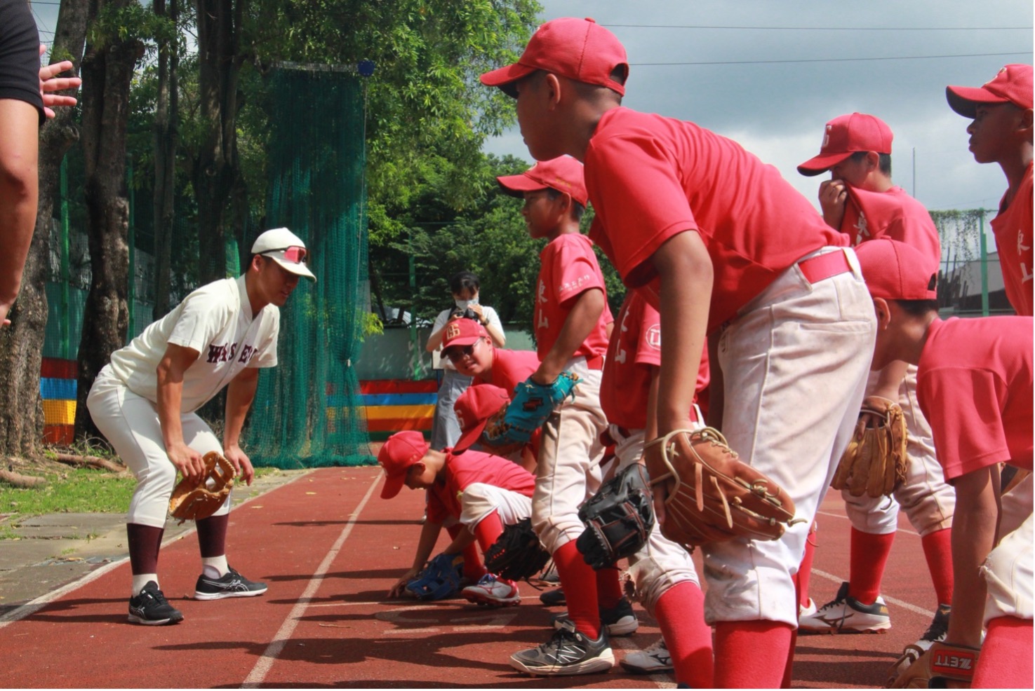 球場上,早大的球員們親自教投球、守備、跑壘等實戰技巧,小朋友們看得超專心,還一邊模仿動作、一邊踴躍發問,現場氣氛超熱烈。交流尾聲,石?岡大還把自己的打擊手套送給東山國小的隊長,鼓勵他:「隊長的責任很重要,你做得很好,要繼續加油喔!」這段貼心互動,讓大家都感動不已。