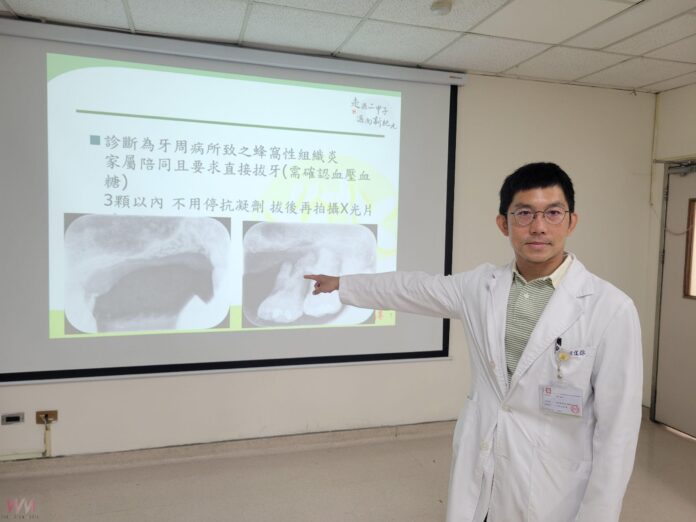 衛生福利部臺中醫院牙科林佳詠主任表示,每年季節交替之際,民眾免疫力下降,蛀牙併發蜂窩性組織炎患者就會明顯增加二到三成,像最近一周就有4個二十歲到五十多歲患者,這些年輕人或中壯年都以為蛀牙是小病,有空再處理就好,但其實嚴重蛀牙不及時處理,可能併發蜂窩性組織炎導致菌血症、嚴重者甚至會併發腦膜炎、心內膜危及性命。