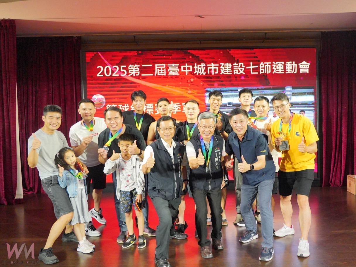(觀傳媒中彰投新聞)【記者廖妙茜/台中報導】台中市政府推動「酷城市、酷運動」政策,鼓勵市民培養健康運動習慣,市府於26日與台中市土木技師公會、水土保持技師公會、建築師公會、結構工程技師公會、應用地質技師公會、中華民國大地工程技師公會及中華民國水利技師公會全國聯合會等七大公會,共同舉辦「七師運動會」,吸引超過700人熱情參與,展開籃球、桌球、羽毛球、撞球、保齡球及高爾夫等六項球類競賽,現場氣氛熱烈、賽事精彩,市府由建設局長陳大田代表盧市長出席並頒發獎狀,表揚優勝隊伍,展現市府與專業團體攜手促進健康生活的成果。