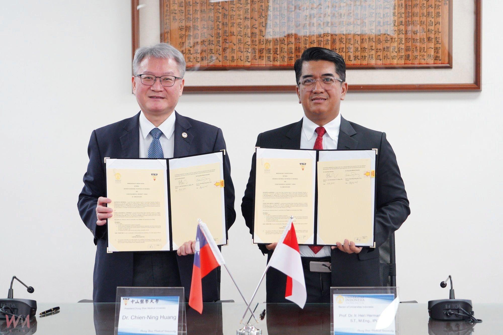(觀傳媒中彰投新聞)【記者廖妙茜/台中報導】台中中山醫學大學與印尼大學(Universitas Indonesia, UI)於今(8)日簽署合作備忘錄(MOU),雙方將在教師互訪、學生交換、課程共構、聯合研究與臨床實作等五大面向展開合作。此次合作是在推動多年的「新南向口腔醫療合作計畫」基礎上,進一步擴展為全面性戰略夥伴關係。而擴大合作的契機,則來自一件跨國轉診的國際醫療案例。