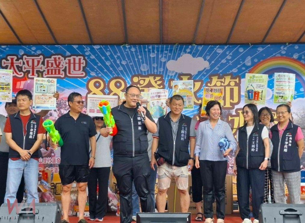 (觀傳媒中彰投新聞)【記者廖妙茜/台中報導】台中市太平區公所及中山里辦公處今(10)日在環太東路福德公園旁共同舉辦太平潑水節活動,吸引眾多親子到場嬉戲狂歡,沁涼水柱從四面八方襲來,讓眾人直呼過癮。副市長鄭照新代表市長盧秀燕出席與民眾同樂並表示,太平潑水節已邁入第15屆,除慰勞父親終年辛勞,並傳達對新住民的重視與關懷,每年參加人數不斷攀升,已成為當地的重要慶典,感謝太平公所及中山里長閻泰利齊力推廣,促進多元文化融合。