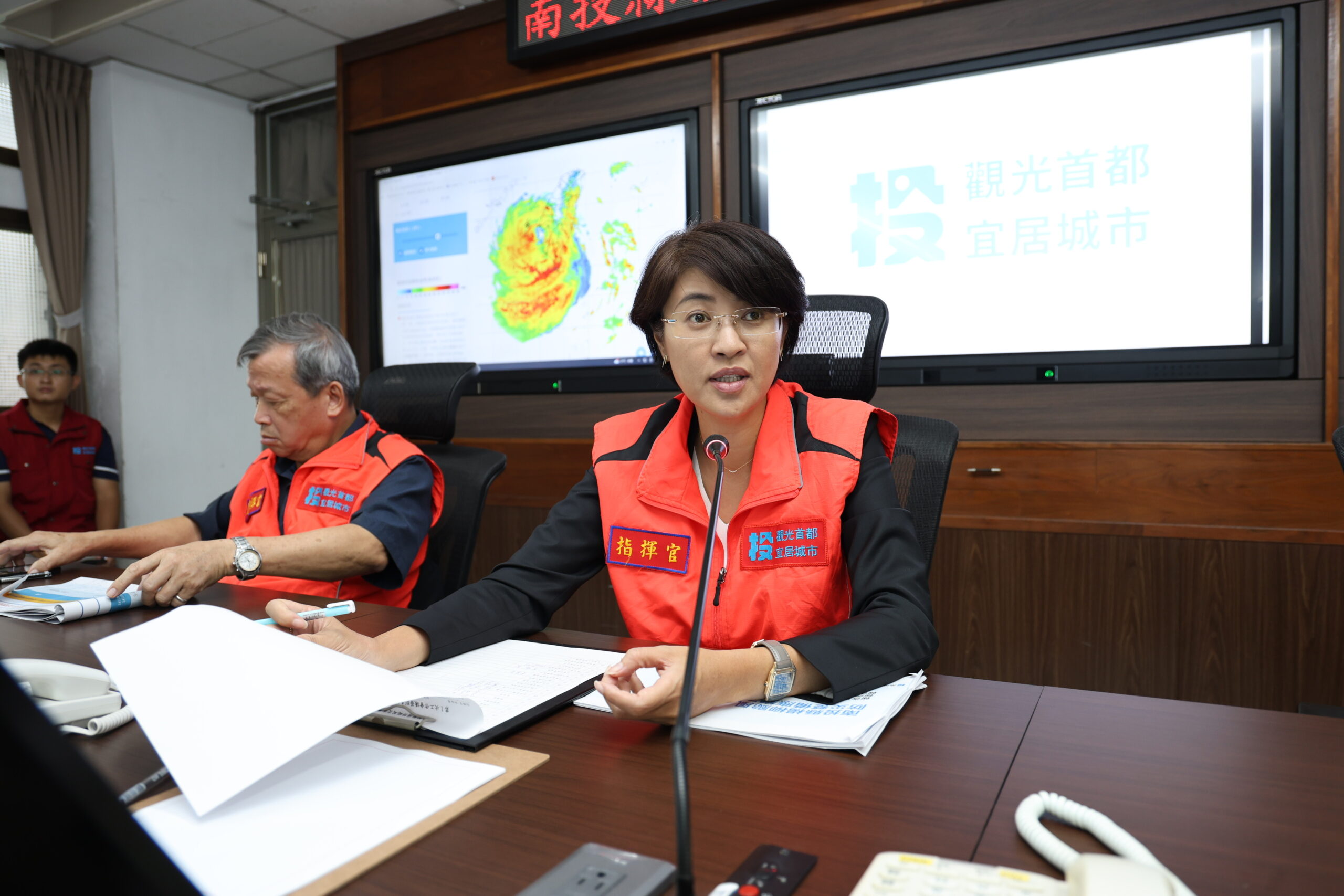 (觀傳媒中彰投新聞)【記者石振賢/南投報導】中颱楊柳13日下午登陸台灣後,約3小時快閃出海。縣長許淑華下午4時30分主持南投縣災害應變中心防災整備工作會議,聽取各單位防災整備情形,許縣長指出,南投截至目前尚無重大災情傳出,縣內最高24小時累計雨量爲山區仁愛鄉,約100毫米。目前全縣無淹水警戒、土石流紅黃警戒發布0條,並無主要道路中斷,後續仍有大雨發生機率,民眾切勿掉以輕心,鄉親朋友們務必小心戒備。