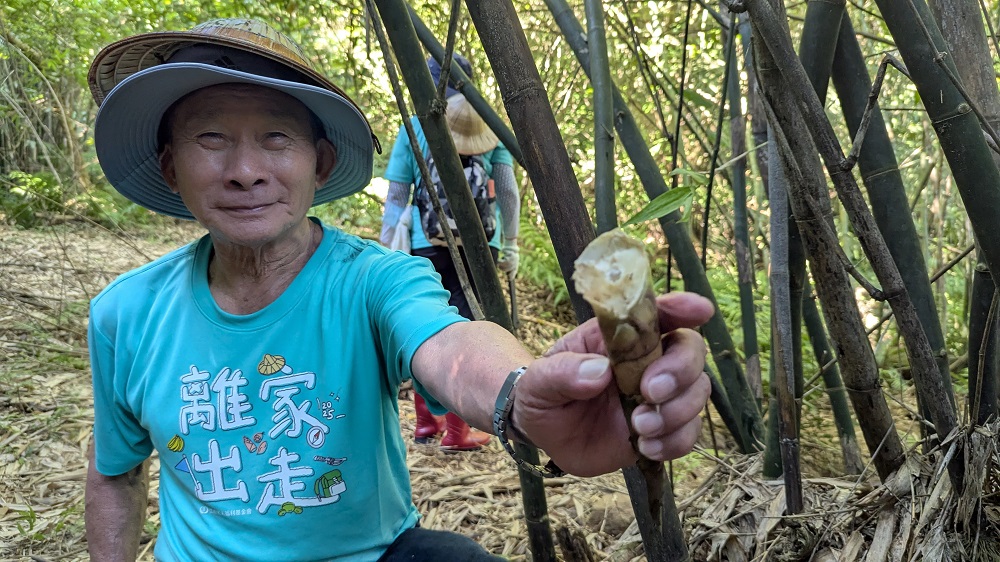 五天四夜的活動,從團隊破冰與地方走讀展開,隨後進入三場「風土餐桌任務」。19日第一天,參與夥伴一早便跟著在地農友上山尋找野生綠竹筍,親手體驗挖筍的農事樂趣。隨後展開竹筒飯的製作,接著前往菇寮摘採新鮮香菇,完成食材採集後,一起享受「從土地到餐桌」的真實體驗。
