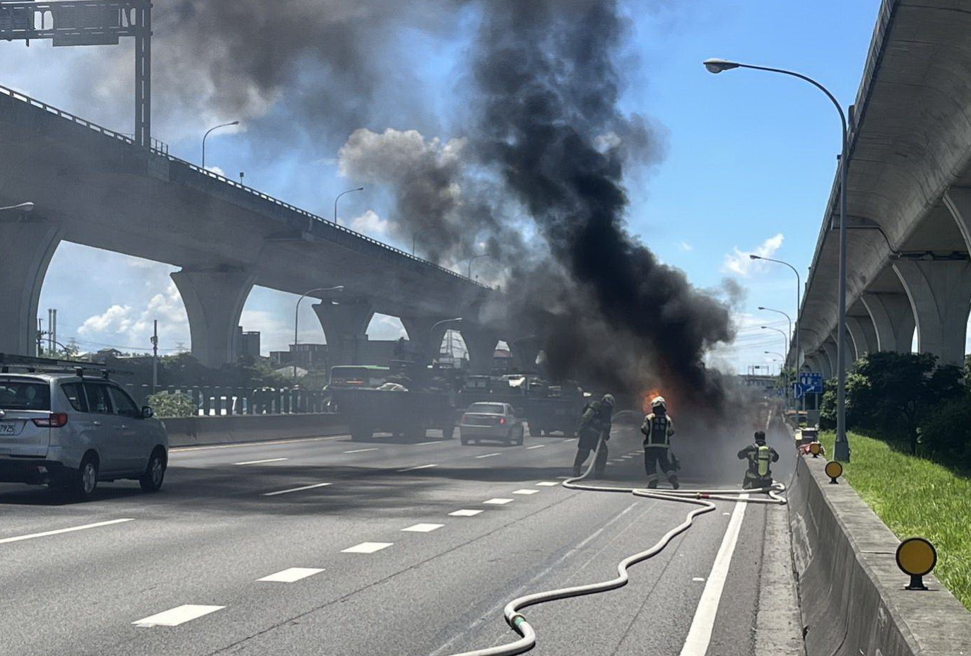 警消人員接獲通報後,在最短時間內抵達現場,立即展開滅火作業。在警消人員的通力合作下,火勢在短時間內被成功撲滅。但由於事故車輛佔據部分車道,導致後方車輛回堵約4公里,嚴重影響通行效率。警方立即透過警廣及交通控制中心發布即時路況,提醒後方用路人提前改道或放慢車速,以確保行車安全並疏導車流。現場於下午1時32分完全排除,全線恢復通車,交通狀況逐漸恢復正常。