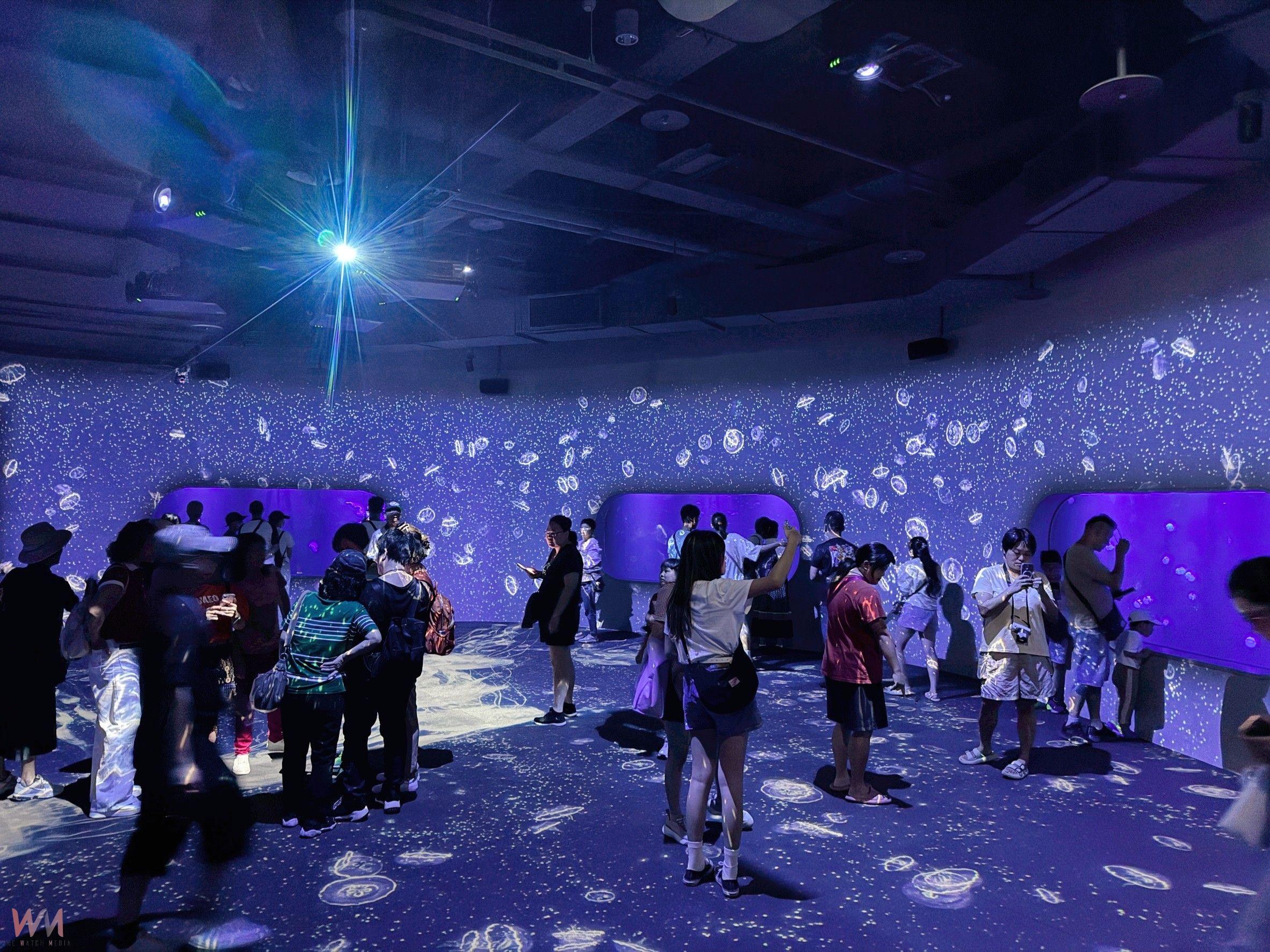 觀旅局長陳美秀表示,台中海洋館採用全國最先進的展示觀念,打破傳統封閉式水族箱設計,館內幾乎全面採取「開放式缸體」,遊客能更清晰觀察海洋生物。這樣的設計,同時也挑戰國人對海洋環境的尊重與愛護。「企鵝展示空間」人氣爆棚,遊客可由下方仰望企鵝悠游的姿態;而館內最受矚目的「水母主題展區」,以全台最大規模、最豐富的水母種類,打造夢幻氛圍,吸引民眾駐足拍照、打卡分享。