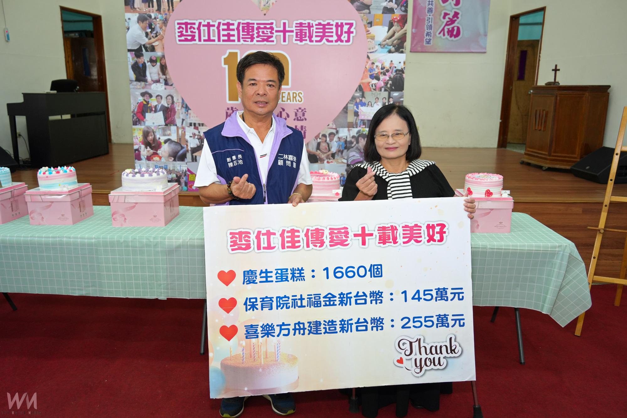 「我是二林萬興人,從小家境清寒,白手起家後,常帶著三個孩子行善助人。我深知『留財不如留德給下一代』。」陳志池表示,十年前第一次探訪喜樂保育院時,被創辦人喜樂阿嬤對弱勢者無私的付出深深感動,因此決定每月贊助蛋糕,把祝福送到孩子們手中。