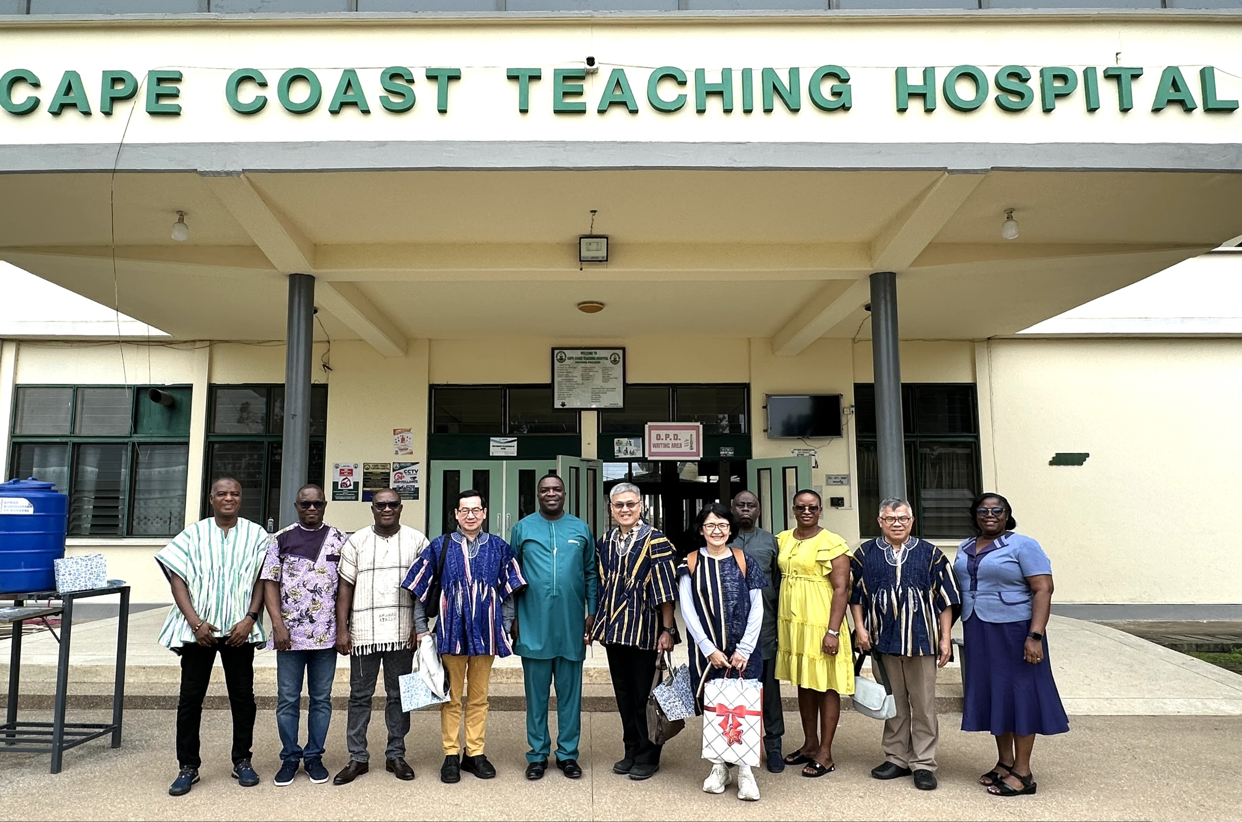 張武修教授此行行程緊湊,8月15日至20日陸續拜訪迦納首都阿克拉Eurocare私立醫院、新落成的私人醫療院所,以及距首都四小時車程、位於幾內亞灣海岸角Cape Coast的國家級區域教學醫院。Cape Coast醫院由十多所不同時期興建的專科醫院組成,沿岸丘陵山坡上建築如同「醫院城」,展現當地教學醫療規模。