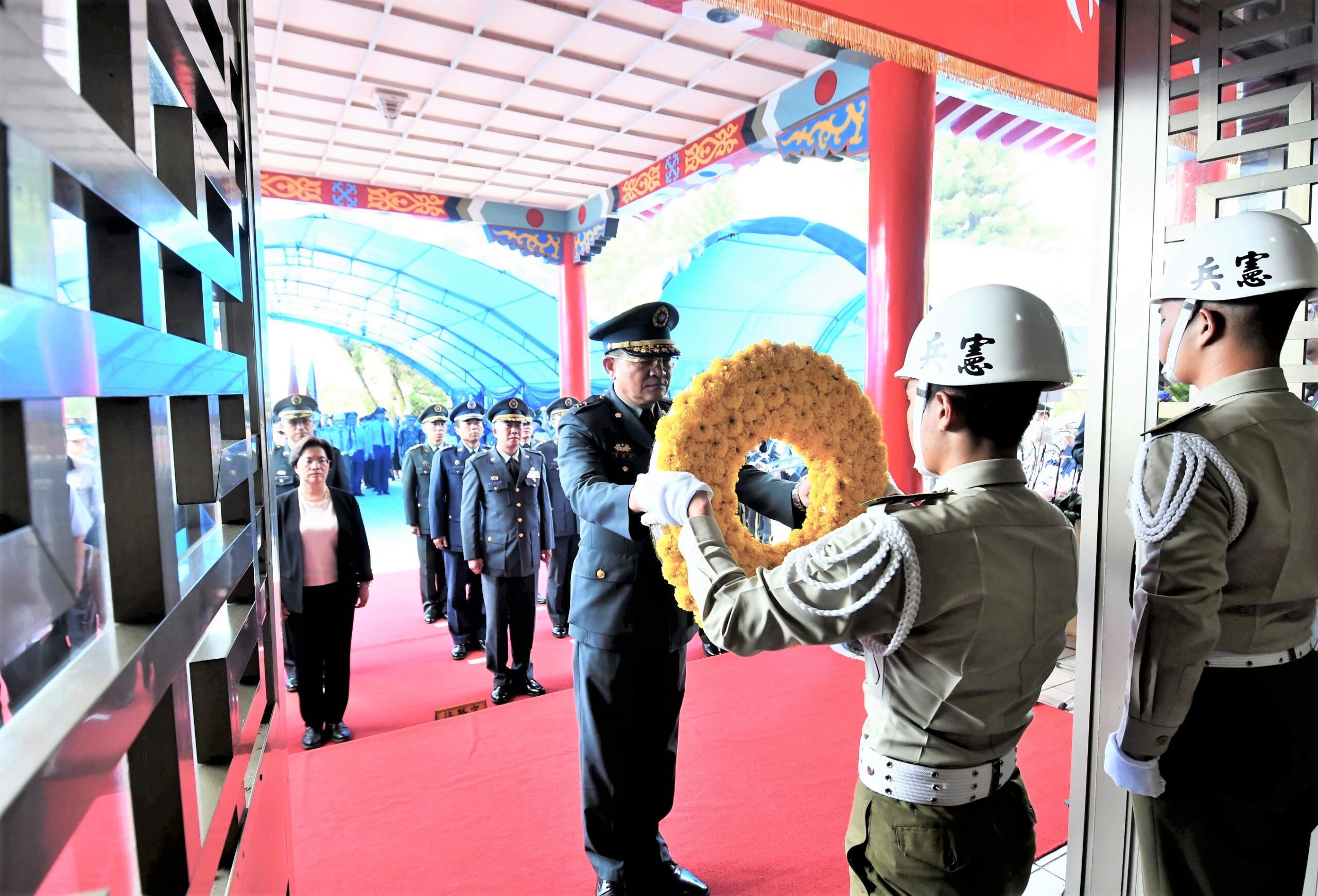 隨後前往國軍彰化忠靈塔及彰化軍人忠靈祠,忠靈塔則由陸軍第10軍團指揮官李中將擔任主祭。追思緬懷為國捐軀、因公殉難的官兵、烈士英靈,感念其對社會、國家的貢獻,祭典場面莊嚴隆重、平和肅穆,表彰忠勇節義精神。