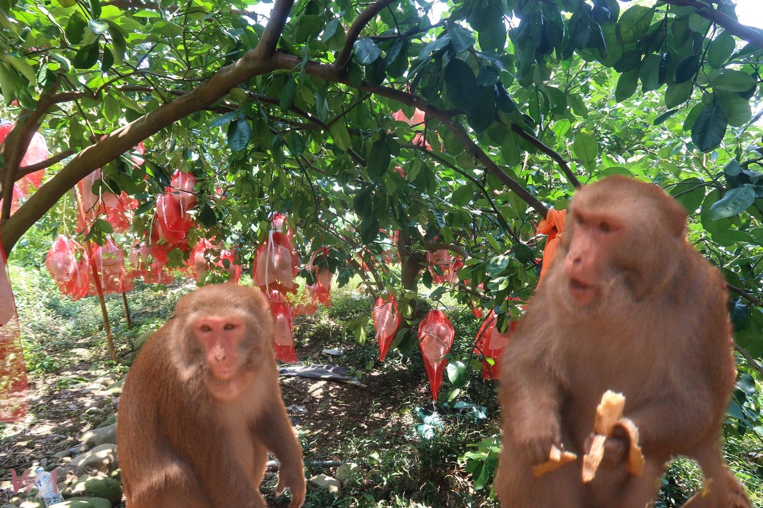 這一群「山大王」真的是太可惡了!二水鄉八卦山麓種植龍眼、白柚、及咖啡,每當到了採收期,獼猴牠們就把果園當遊樂場,不只在樹枝間盪來盪去,拉斷樹枝,造成整個枝條上農作的損失外,不管是已成熟能吃的,還是未成熟不能吃的,也都難逃彌猴的魔爪。