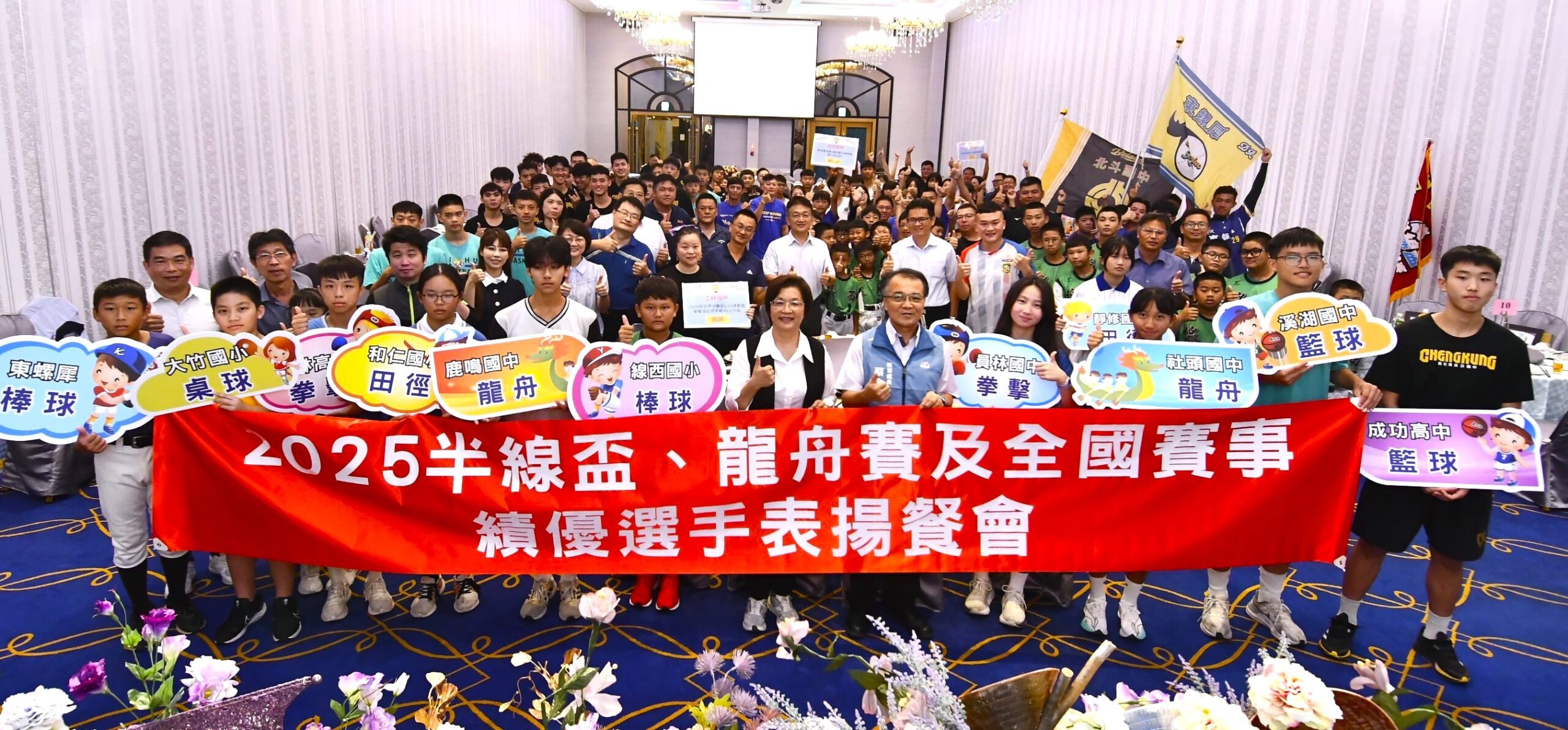 (觀傳媒彰化新聞)【記者陳雅芳/彰化報導】彰化縣今年上半年運動賽事成績斐然,今(10)日上午,124位優秀選手與教練齊聚富山日本料理,參加「2025半線盃、龍舟賽及全國賽事績優選手表揚餐會」,現場氣氛熱烈,縣長王惠美頒獎向選手們的努力與亮眼表現致敬,也感謝教練及師長在技術指導與生活陪伴上的辛勤付出。