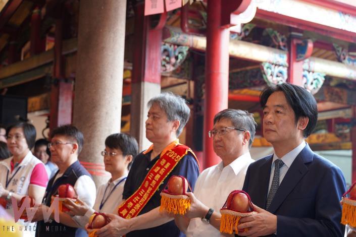 (觀傳媒桃竹苗新聞)【記者金祐妤/新竹報導】一一四年新竹縣新埔褒忠亭義民廟義民祭的祭祀大典,十一日上午十點盛大登場,總統賴清德、新竹縣長楊文科、褒忠亭義民廟董事長林光華等人,以三獻禮向義民爺爺參拜,祈求國泰民安、風調雨順、義民節慶典圓滿、民眾萬事如意。